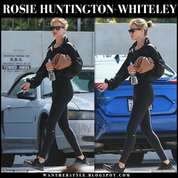 Rosie Huntington-Whiteley in black sports bra and black leggings on August 28